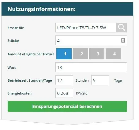 Nehmen wir an, Sie haben eine Leuchte mit vier Leuchtstoffröhren, etwa die Osram L 18W 830 Lumilux | 59cm - Warmweiß. Die tägliche Betriebszeit liegt in unserem Beispiel bei 12 Stunden an fünf Tagen in der Woche. Ersetzen Sie die vier Röhren nun mit einer LED-Alternative, so sparen Sie laut unserer Beispielrechnung jedes Jahr rund 35,- € ein. Und das nur an dieser einen Leuchte. Die Amortisation erfolgt nach gut anderthalb Jahren und über die gesamte Produktlebensdauer sparen Sie über 700,- € an Stromkosten. Umso früher Sie zu LED wechseln, desto eher können Sie anfangen zu sparen!
