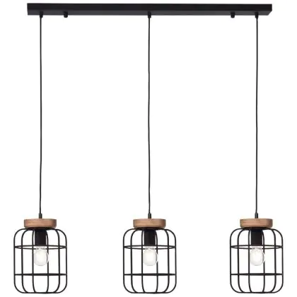 Brilliant Gwen Pendelleuchte Metall Holz Schwarz | Geeignet für 3x E27