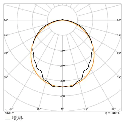 Diese LED-Deckenleuchte punktet mit einer Leuchtkraft von 6.400 lm und strahlt somit einiges an Licht aus. Die ebenfalls hohe Lichtausbeute von 135 lm/W zeugt von einer guten Effizienz. Wenn Sie die Stärke dieses Lichts mit dem Ihrer konventionellen Lichtlösung vergleichen möchten, empfehlen wir Ihnen einen Blick in unsere praktische Tabelle Lumen in Watt umrechnen.