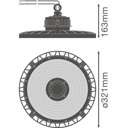 Diese LED-Hallenleuchte punktet mit einer Leuchtkraft von 22.000 Lumen (lm) und strahlt damit besonders viel Helligkeit aus. Die ebenfalls hohe Lichtausbeute von 140 lm/W zeugt von einer guten Effizienz. Wenn Sie die Stärke dieses Lichts mit dem Ihrer konventionellen Lichtlösung vergleichen möchten, empfehlen wir Ihnen einen Blick in unsere praktische Tabelle Lumen in Watt umrechnen.