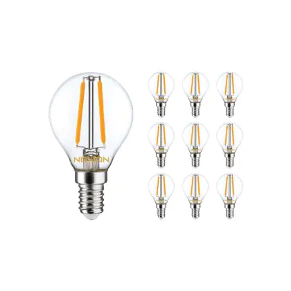 | Herstellername | Multipack 10x Noxion Lucent Filament LED Lustre P45 E14 220-240V 2.5W 250LM CRI80 2700K | |