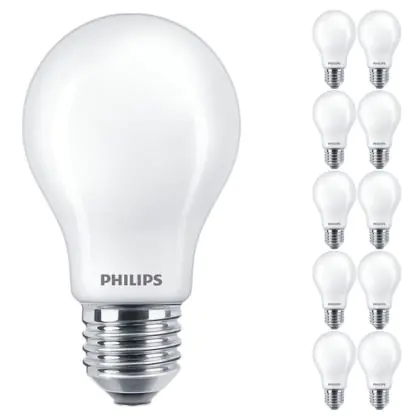 Die Mehrfachpackung 10x Philips Corepro LED Glühbirne E27 Birne Matt 7W 806lm - 830 Warmweiß | Ersatz für 60W ist eine effiziente E27 LED-Lampe und der perfekte Ersatz für Ihre konventionellen 60W Lampen mit E27-Sockel. Zudem strahlt sie Licht in der Farbtemperatur 3000K - Warmweiß aus und punktet durch eine lange Lebensdauer.