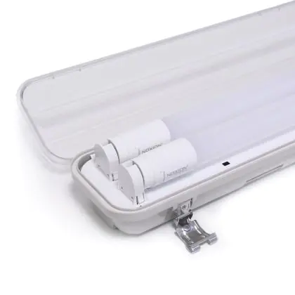 Die Noxion LED Feuchtraumleuchte Gehäuse Poseidon V2.0 incl. 2x Noxion LED Röhre T8 Standard Output 19W 2x2300lm - 830 Warmweiß | 150cm ist eine Feuchtraumleuchte. Sie strahlt Licht in der Farbtemperatur 3000K - Warmweiß aus und punktet durch eine lange Lebensdauer. Diese Leuchte ist speziell zur Verwendung in Feuchträumen (Keller, Waschräume, etc.) vorgesehen.