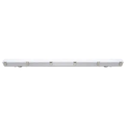 Die Noxion LED-Feuchtraumleuchte der Reihe Pro ist 150 cm lang. Sie ersetzt eine herkömmliche Leuchte à 58 Watt und verbraucht dabei selbst lediglich 33 Watt. Diese LED hat eine tageslichtweiße Farbtemperatur (6.500 Kelvin). Sie ist IP66- und IK08-klassifiziert und daher auch in Außenbereichen anwendbar. Dank der praktischen Durchgangsverdrahtung können Sie ganz einfach mehrere Leuchten miteinander verbinden.
