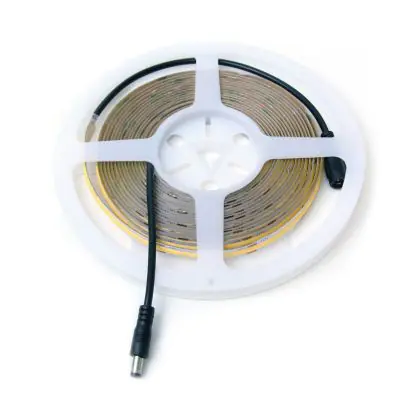 Der Noxion LED-Streifen 5M/10mm COB 480LEDs/M 75W 927 2700K 1428lm | Innen inkl. Meanwell Treiber MW-LRS-100W-24v + Noxion Streifen DC Kabel ist eine optimale Lösung für die indirekte Beleuchtung in Innenräumen. Der LED-Strip ist 5 Meter lang und verfügt über 480 LEDs pro Meter. Das Lichtband hat eine extra warmweiße Lichtfarbe und verbreitet somit eine besonders gemütliche Atmosphäre. Ob Hintergrundbeleuchtung für Ihren Fernseher, Möbelstücke oder als indirektes Licht für Treppenstufen, Geländer oder Ihre Küchenarbeitsfläche – der LED-Streifen ist eine energiesparende und langlebige Lichtlösung.