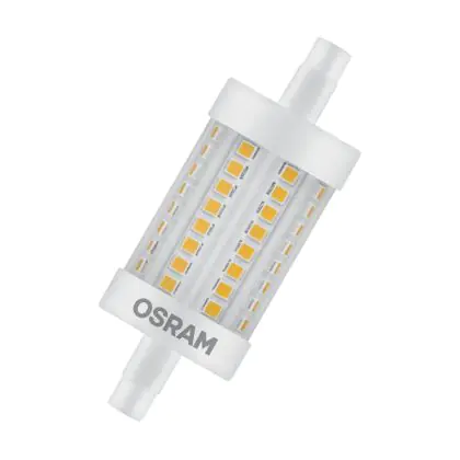 Die Osram LED R7s 78mm Klar 7.3W 806lm - 827 Extra Warmweiß | Ersatz Für 60W ist eine effiziente R7s LED-Lampe und der perfekte Ersatz für Ihre konventionelle Halogen-Stablampe mit 60W. Zudem strahlt sie Licht in der Farbtemperatur 2700K - Extra Warmweiß aus und punktet durch eine lange Lebensdauer.