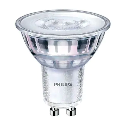 Die Philips CorePro LEDspot MV GU10 ist eine moderne LED-Lampe. Sie bietet Energieeinsparungen von ca. 90 % und ersetzt herkömmliche Lampen mit einem GU10-Sockel. Das macht sie zu einer beliebten Alternative. Sie spendet Licht in der Farbtemperatur extra Warmweiß, ist dimmbar und besitzt eine lange Lebensdauer, sowie einen kleinen Abstrahlwinkel.