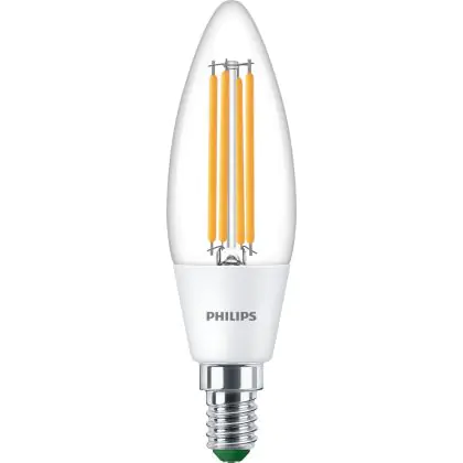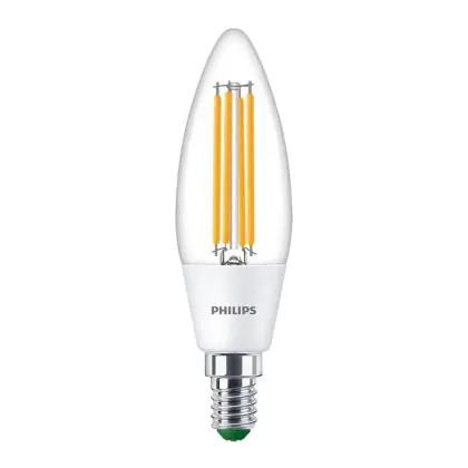 Die Philips MASTER LED Kerze E14 Fadenlampe Klar 2.3W 485lm - 840 Kaltweiß | Ersatz für 40W ist eine effiziente E14 LED-Lampe mit Retrodesign und der perfekte Ersatz für Ihre konventionellen 40W Lampen mit E14. Zudem strahlt sie Licht in der Farbtemperatur 4000K - Kaltweiß aus und punktet durch eine lange Lebensdauer.