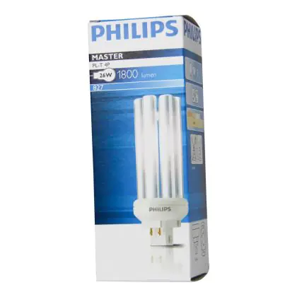 Philips PL-T 4P sind energieeffiziente Leuchtstofflampen mit separater Spannungsversorgung. Diese Lampen müssen mit einem ferromagnetischen Vorschaltgerät verwendet werden und haben 4 polige Buchsen. Mit ihrer GX24q-3 Buchse sind Philips PL-T 26W 827 4P leicht in die Leuchten zu installieren.